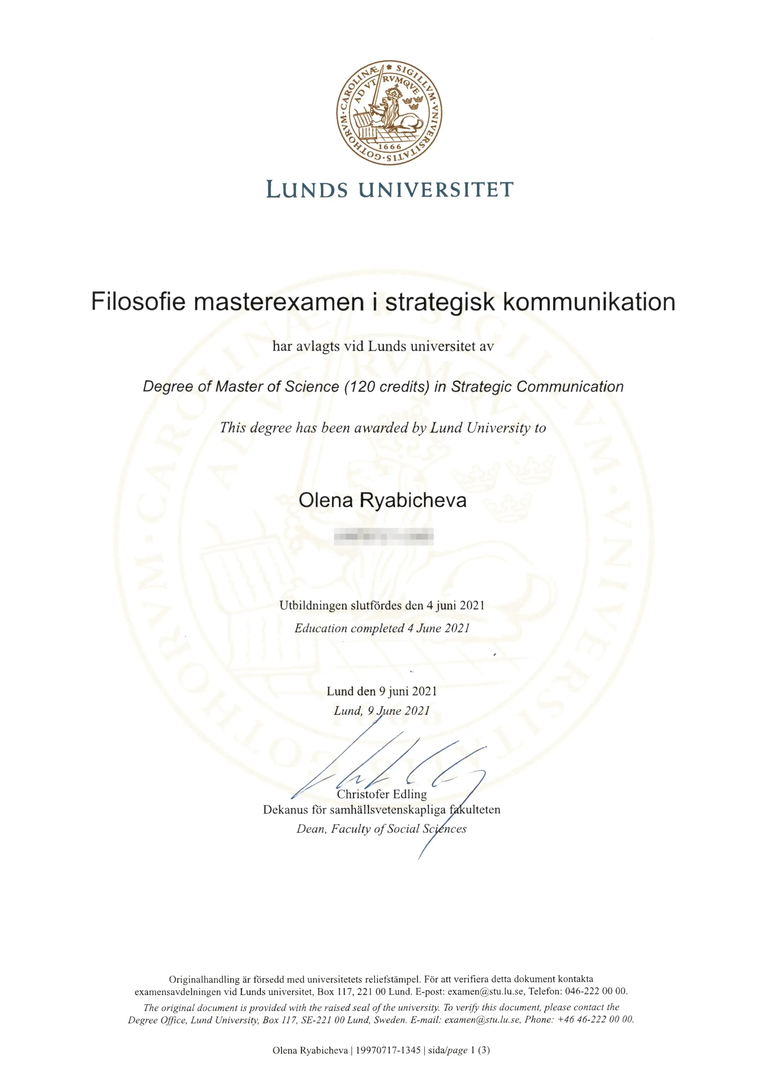 2021 avslutade jag min masterexamen inom ämnet strategisk kommunikation.