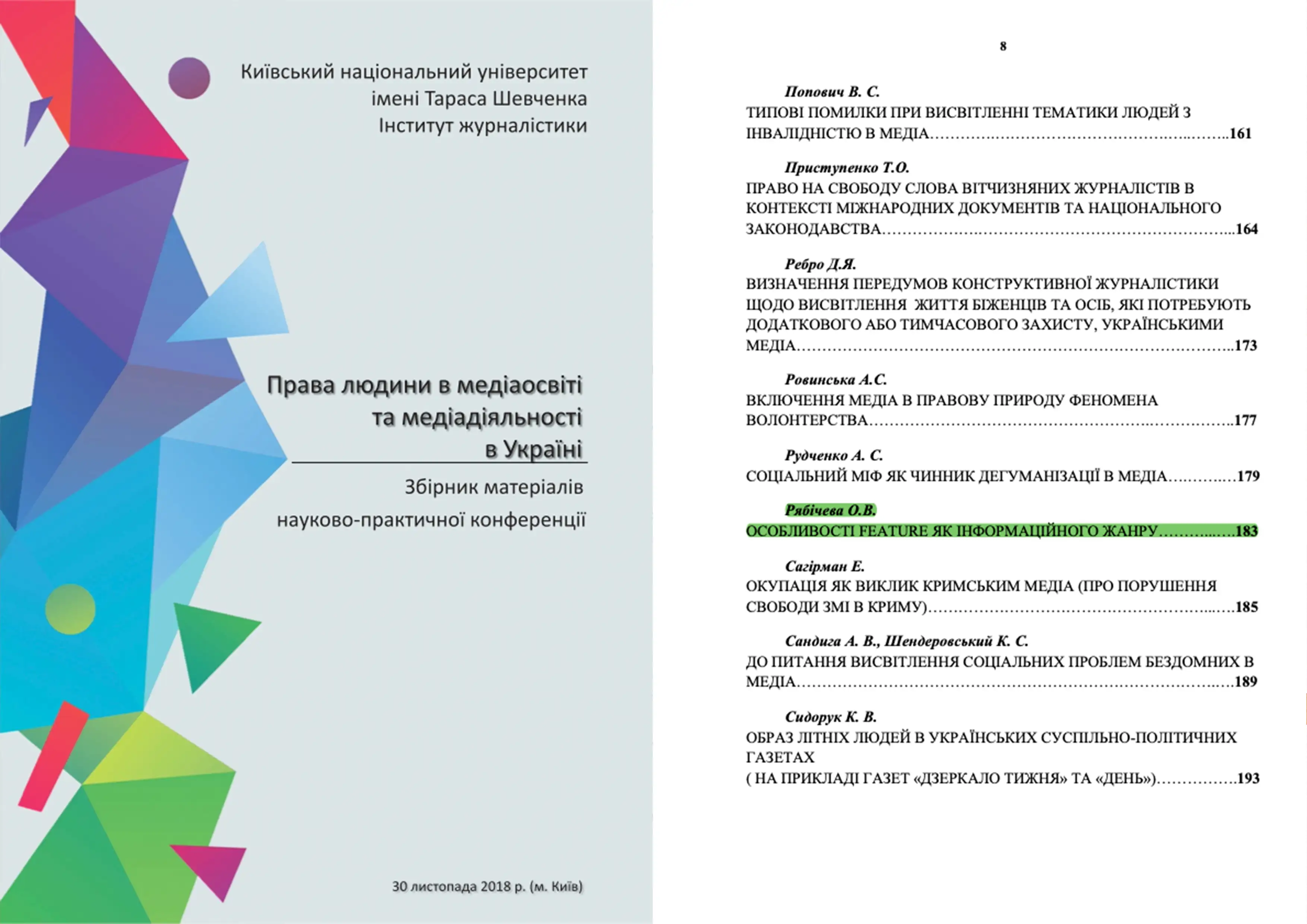 I november 2018 deltog jag i konferensen "Mänskliga rättigheter inom medieutbildning och medieaktiviteter i Ukraina" med presentationen "Feature som en informationsgenre".