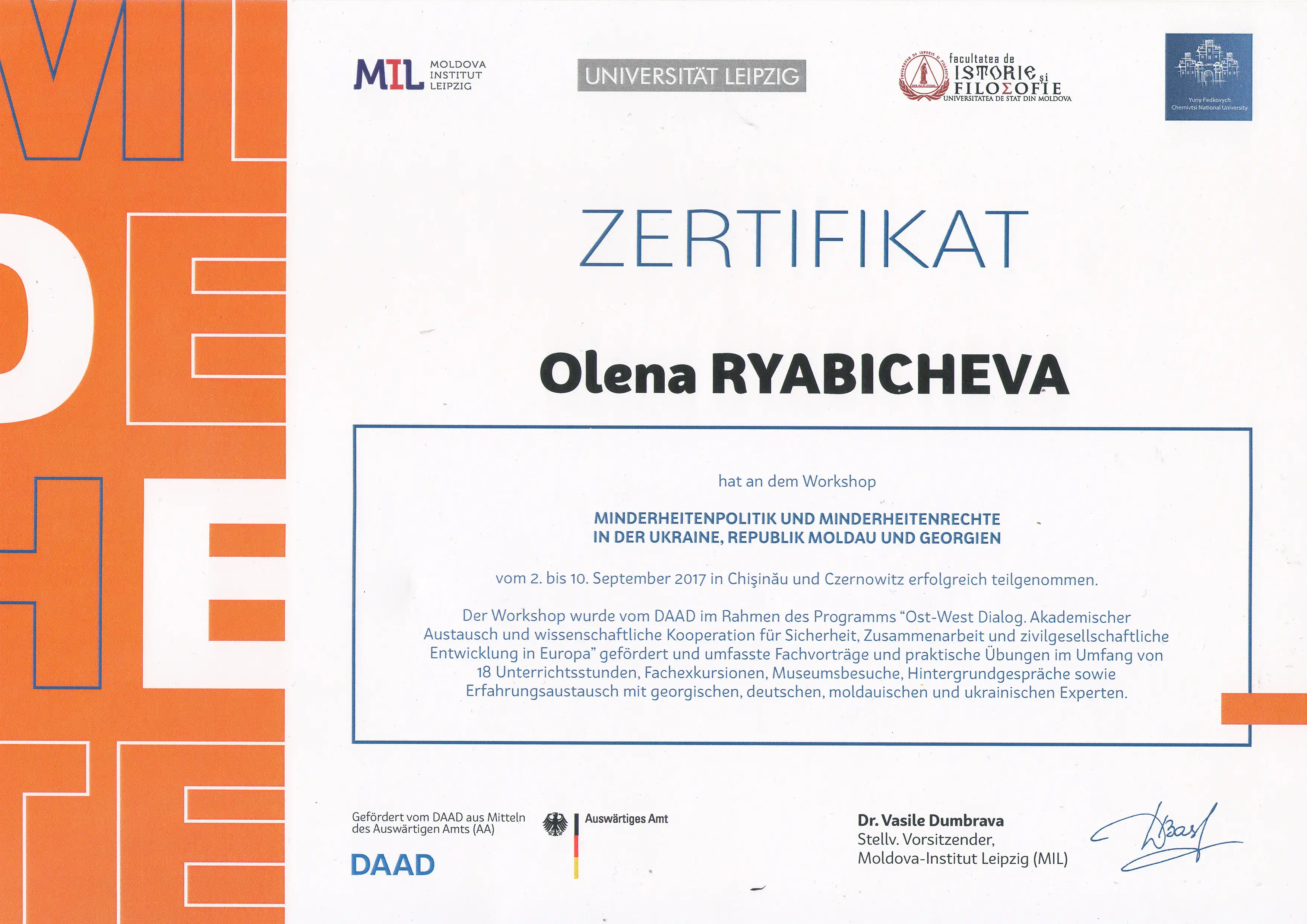 I september 2017 deltog jag i workshopen "Minoritetspolicy och minoritets rättigheter i Ukraina, Republiken Moldavien och Georgien".